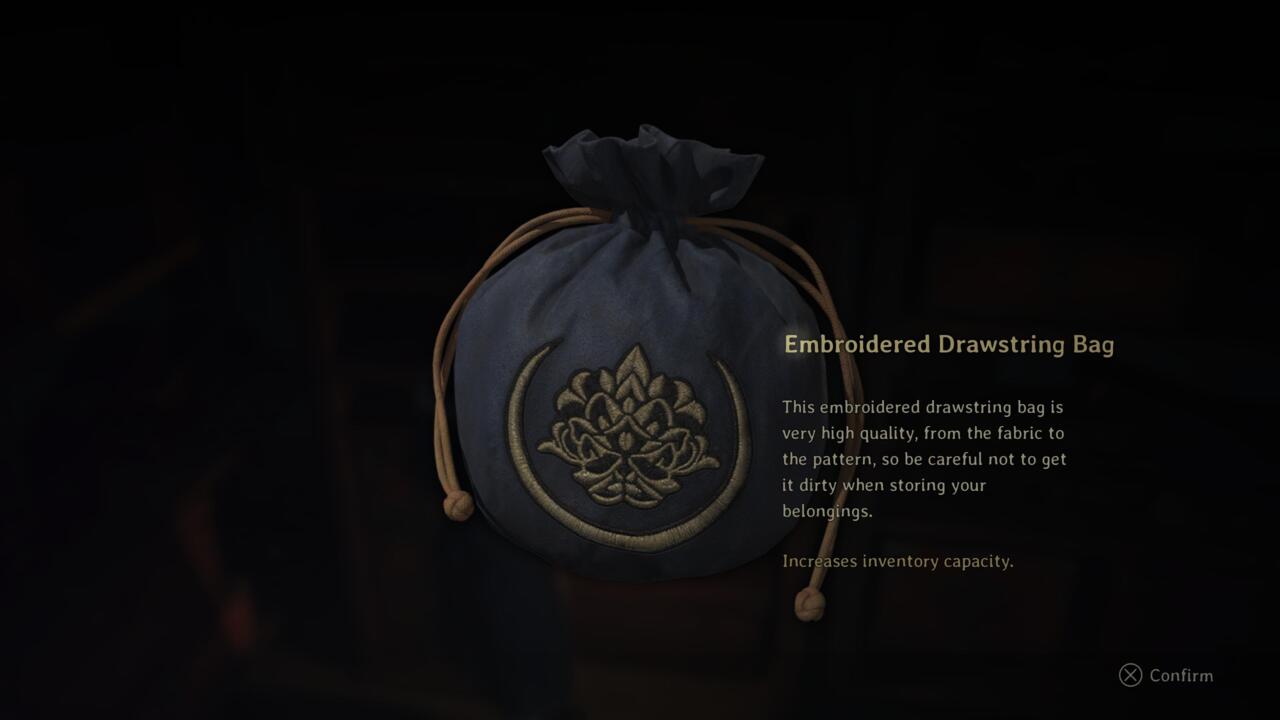 در طول مراسم در قلمرو ارواح، پس از رسیدن به خانه شو، باید سه مراسم را کامل کنید. پس از تکمیل دو مراسم، به راهرویی در گوشه جنوب شرقی طبقه اول منتقل میشوید. یک در به طبقه اول اصلی باز میشود و دیگری به پلکانی در بخش جنوب شرقی منتهی میشود. این پلکان به اتاق بزرگی با چند دشمن و شکافی در کف منتهی میشود. تمام اتاق را دور بزنید تا کیسه را روی یک قفسه پیدا کنید.